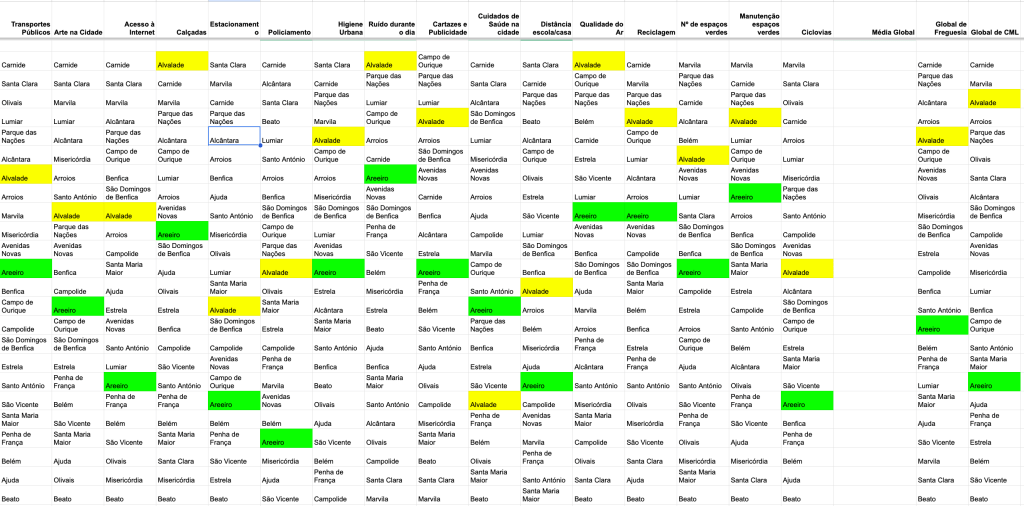 Em 2024 a melhor era Alvalade, Campo de Ourique e Penha de França. As piores eram Campolide, Estrela e Santa Clara.