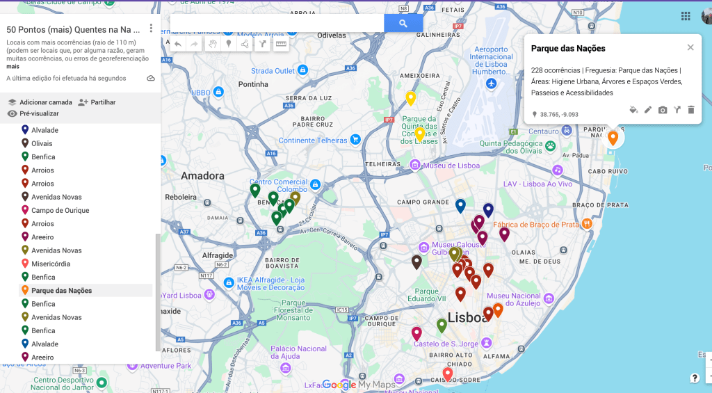 - Árvores e Espaços Verdes – 341 ocorrências