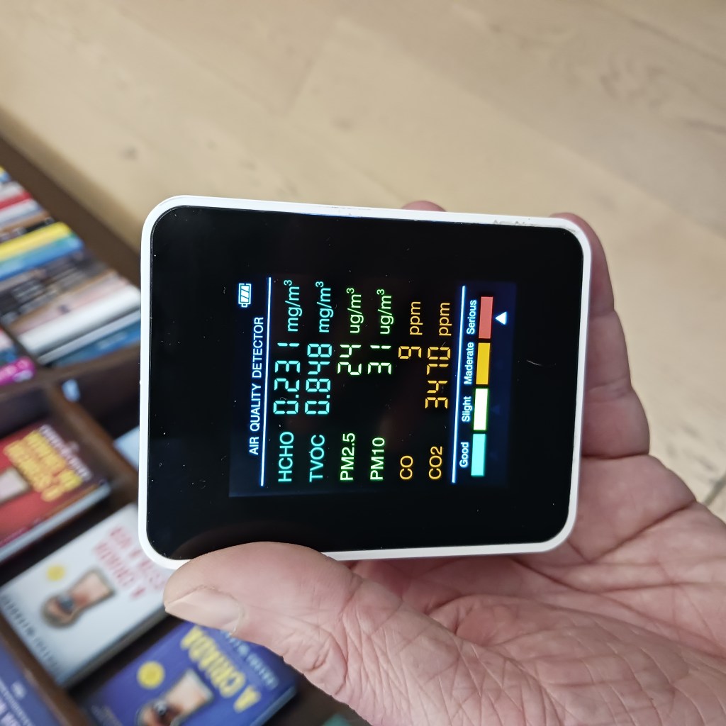 - os sensores de CO e CO2 são rápidos a reagir a mudanças mas mesmo o de CO2 pode demorar 3/4 minutos a normalizar depois de atravessar uma nuvem desse gás. O de TVCO e HCHO demoram alguns minutos a regressar ao normal