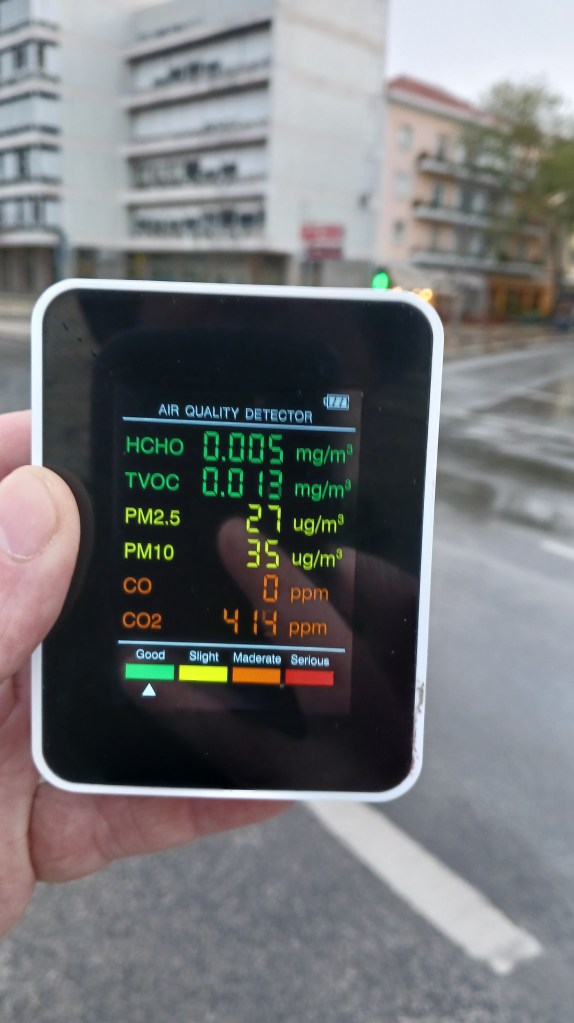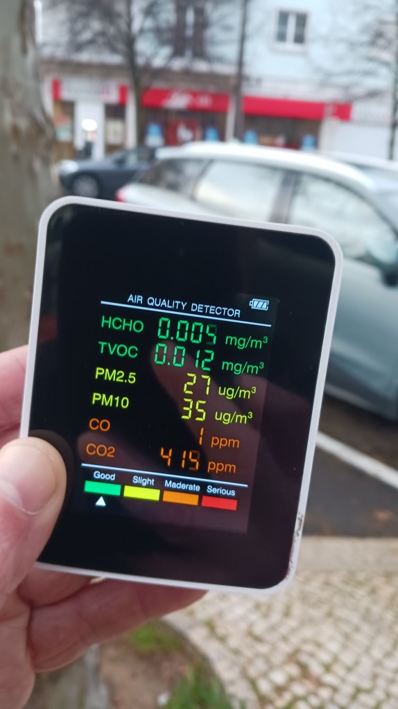 Com efeito, os dados dessa estação revelam uma concentração de dióxido de azoto (NO2) superior ao limite anual permitido pela legislação europeia. Já as partículas inaláveis (PM10) ficaram dentro do valor legal, mas claramente acima do recomendado pela OMS. Em 2023, a qualidade do ar de Lisboa piorou em relação ao ano anterior. Para 2024 ainda não temos dados comparativos mas não é provável que tenham ocorrido melhorias dado que aumentou em mais de 5% o número de veículos em circulação em Portugal assim como o número de horas médias perdidas no trânsito na capital (60 horas por mês (?)).